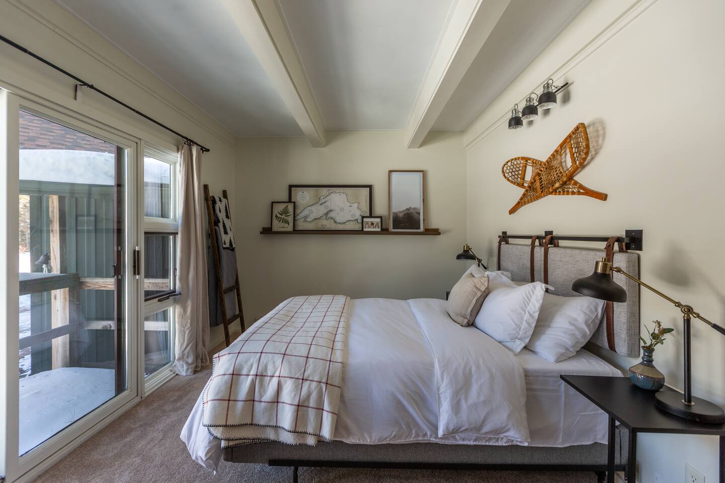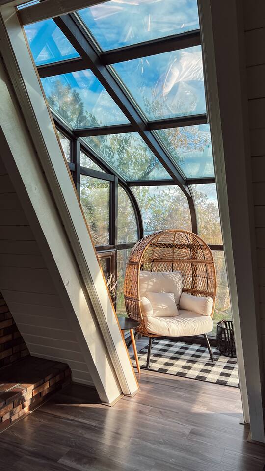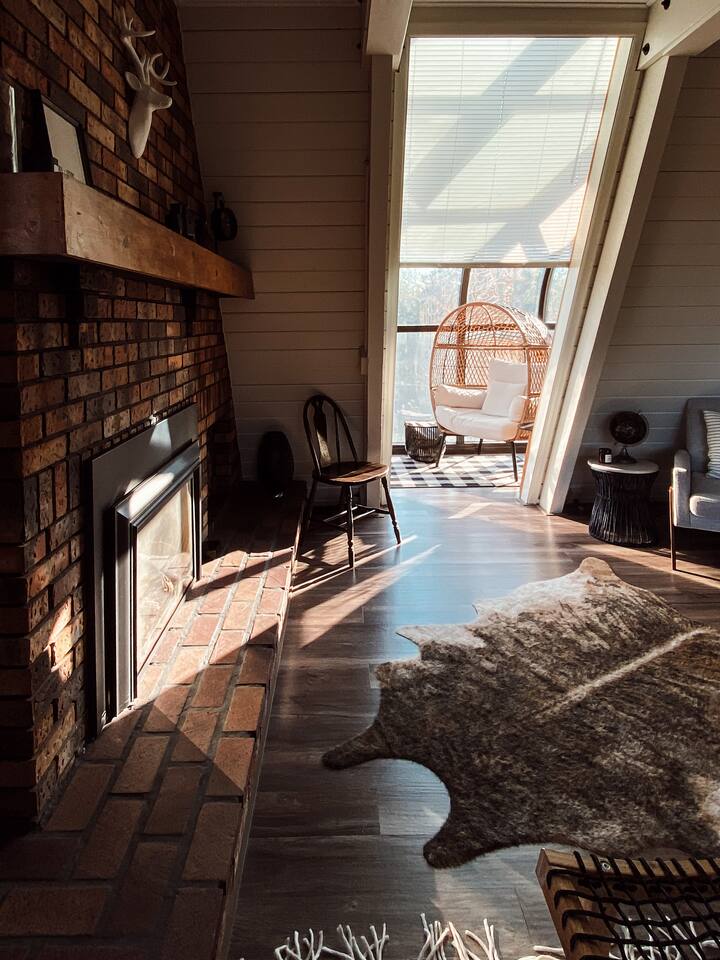 Wild Pines Cabin is a unique 1,200 square foot a-frame with 3 bedrooms/2 bathrooms, a fully equipped kitchen with modern appliances, cozy common spaces, smart TV, dedicated desk workspace, large windows showcasing panoramic lake views, a brick gas fireplace, year-round sunroom, and three outdoor decks. Follow us on Insta at @wildpinescabin for more photos and info!