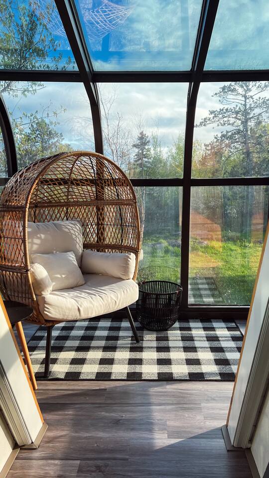 -Absolutely no weddings/elopements with more than 6 guests present on the property at any given time. -The upstairs bedroom with queen bed is an open area without a private door. -Being an off-grid type of property, we're limited to satellite wifi. It's usually fast enough for video calls and streaming but ultimately subject to signal strength and number of devices on the network. -The staircase is steep so guests with young children or limited mobility should be mindful of this when booking. -Black flies can be a problem up and down the North Shore. While we have the cabin professionally sprayed, we are in the middle of the woods so you may encounter flies, mosquitos, and other insects during your stay. -A 4-wheel-drive vehicle is required for accessing the cabin during months with potential for snow/ice (usually late November - March).